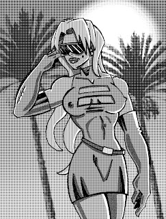 En esta segunda imagen he escaneado un dibujo en blanco y negro, he creado barias capas pintándolas con distintos tonos grises y los he transformado en tramas.