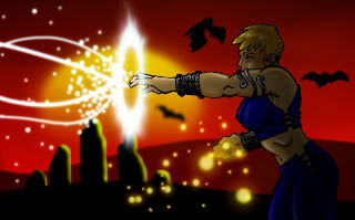 Y por supuesto los podéis utilizar para vuestras ilustraciones, como en el caso del siguiente dibujo, en el que he utilizado barios de estos pinceles para realizar algunos elementos, como los matices del atardecer del fondo o los efectos de energía que surgen de las manos de la protagonista.